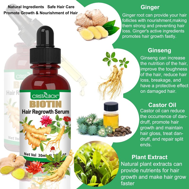- 5 PACK Biotin Hair Regrowth Oil: This Hair Essece supports the strengthening of the hair root and can make the blood flow of the scalp. Make perfectly smooth hair. And easy to manage and healthy-looking