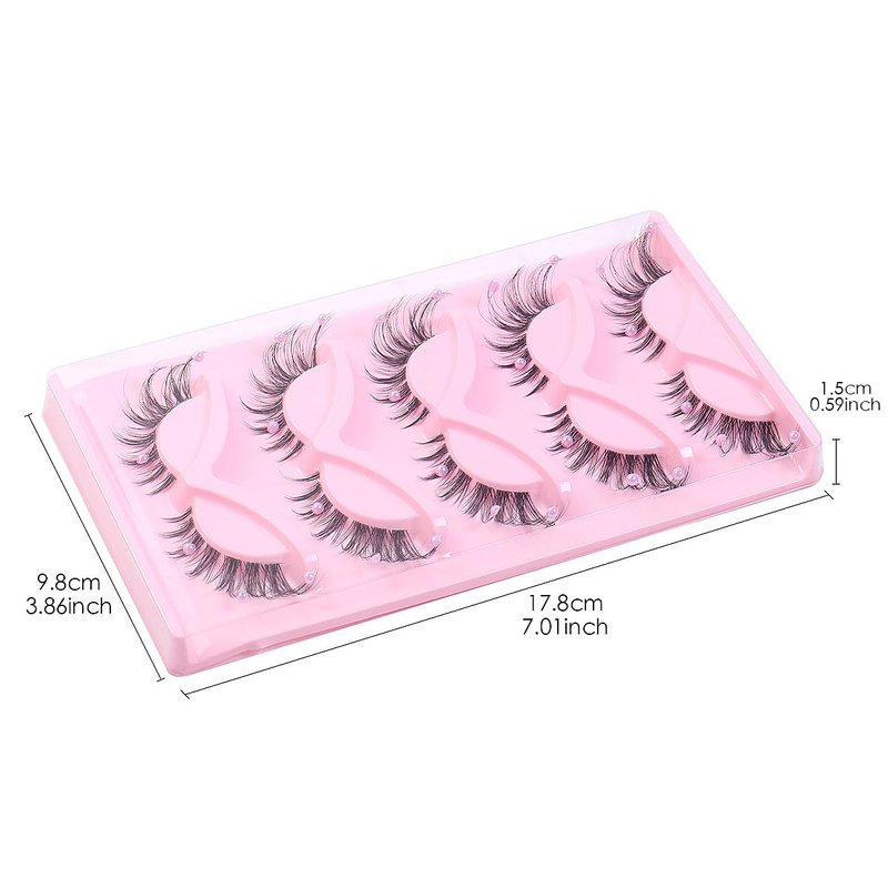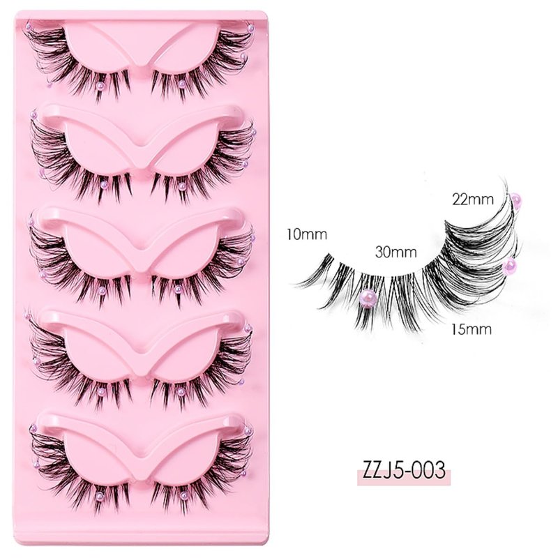 5 Pairs Wispy Lashes Pearl False Eyelashes Fluffy Natural Look False Eyelashes Thick Soft Curly Lash Extensions - Easy Application-Pink
