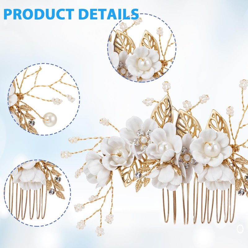 - About Color: The hair accessories feature a classic white and gold, enhanced with sparkling clear rhinestones and pearls. This timeless combination exudes grace, purity, and sophistication, making it an ideal choice for bridal or wedding ensembles.