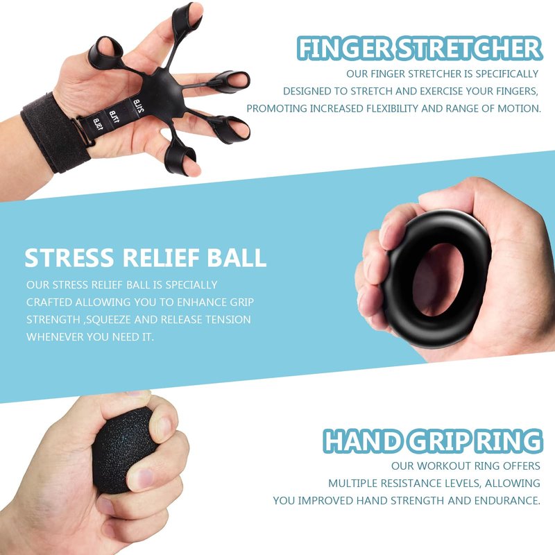 - 【Complete Hand Grip Strengthener Workout Kits 5 Pack】- The grip trainer set includes an Adjustable Smart Counting Hand Exerciser (11lbs to 132lbs.),Adjustable Finger Stretcher With 3 Level, Finger Exerciser(4lbs on each finger), Stress Relief Ball 30lbs, Forearm Workout Ring 50lbs