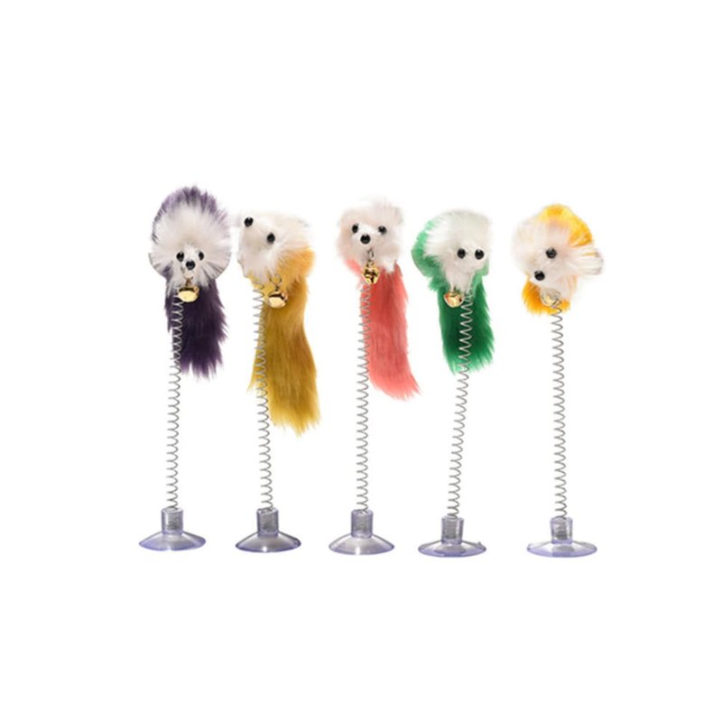 Interactive cat toy with suction for indoor cats - This smart self play hanging toys with mouse feather is good for you pet's exercise. Do not worry about down time for your pets. Material: sucker + feather mouse + spring, fancy toys for pet that can be suction to the window for cat. Great flexibility and bounce, attract cat's attention when it shakes with Mice appearance with jingle bell, motivate cat's curiosity. Suction cup mount, can stick on any smooth surface like tiles and glass. Size: 20cm/7.87" (Approximate). Package Included: 5 x Spring Mouse Toys for cat (Random Color).