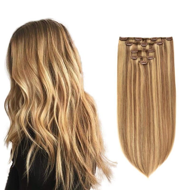5 Pieces 12" Remy Clip in Ombre Hair Extensions Human Hair Light Blonde Mixed Golden Blond Highlights - Silky Straight Long Thick Real Hair Extensions for Women Fashion (12 inches, 16/22, 60grams)
