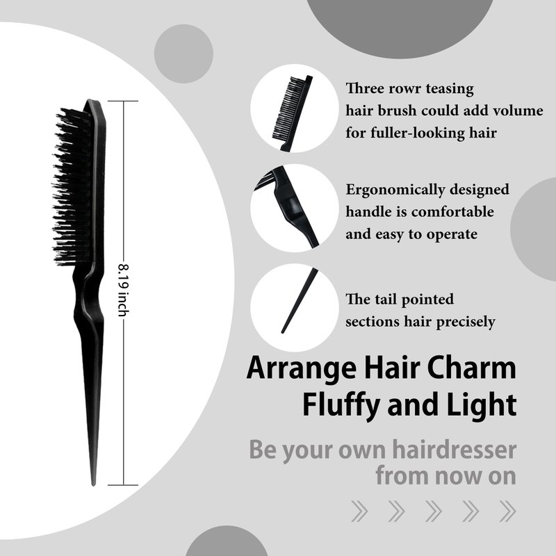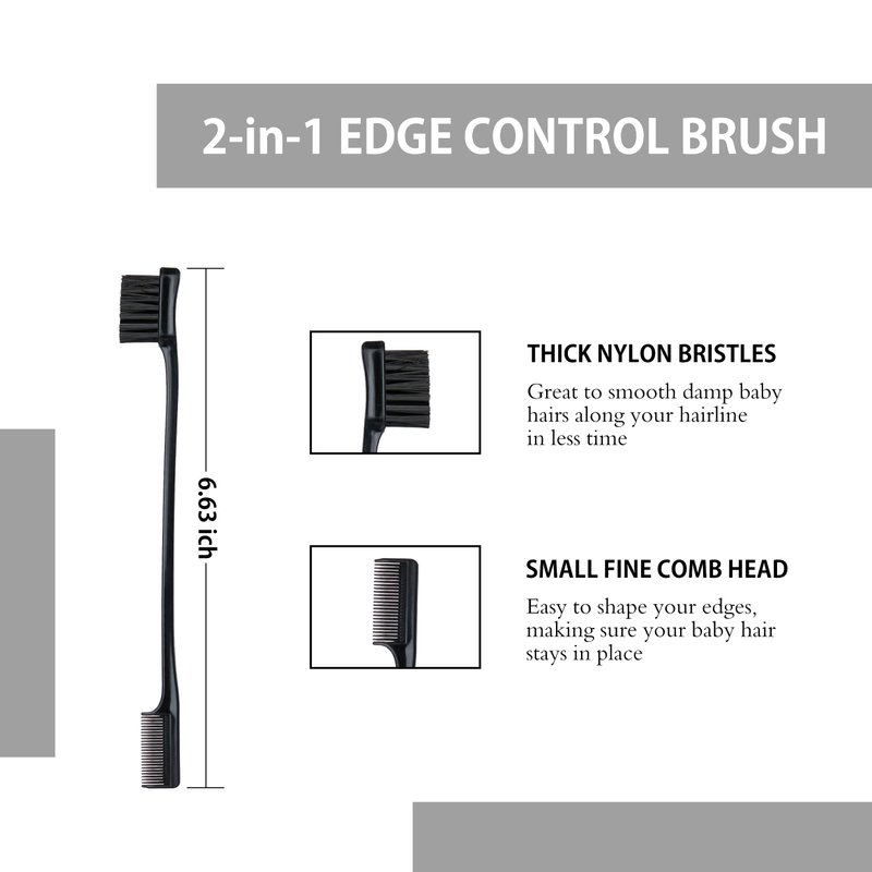 - Teasing Brushes Set for Hair Care - 5 pieces of hair control tools, including 6.8 inches double sided hair edge brush, 8.5 inches 3 row salon bristle brushes, 8.6 inches pin tail comb and 2pcs 4.2 inches alligator clips. Beside, 30 Days RETURN and 6 Months WARRANTY are offered for this comb and brush set. Please contact us if any questions.