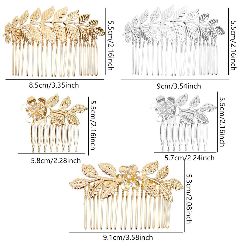 - 【Exquisite Design】These hair combs are in design of leaf and flower, decorate with rhinestones. 5 styles for you to choose to match according with your hair styles.