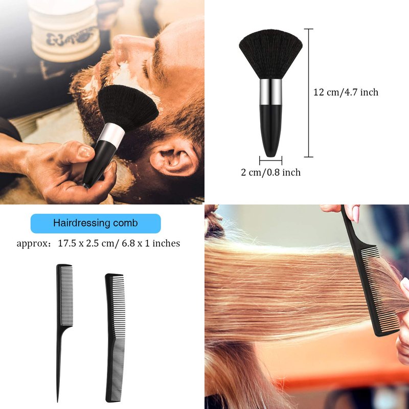 Came with 2 pieces black comb and 1 piece neck duster brush, which are necessary hair cutting accessories for hair salons and barbers.