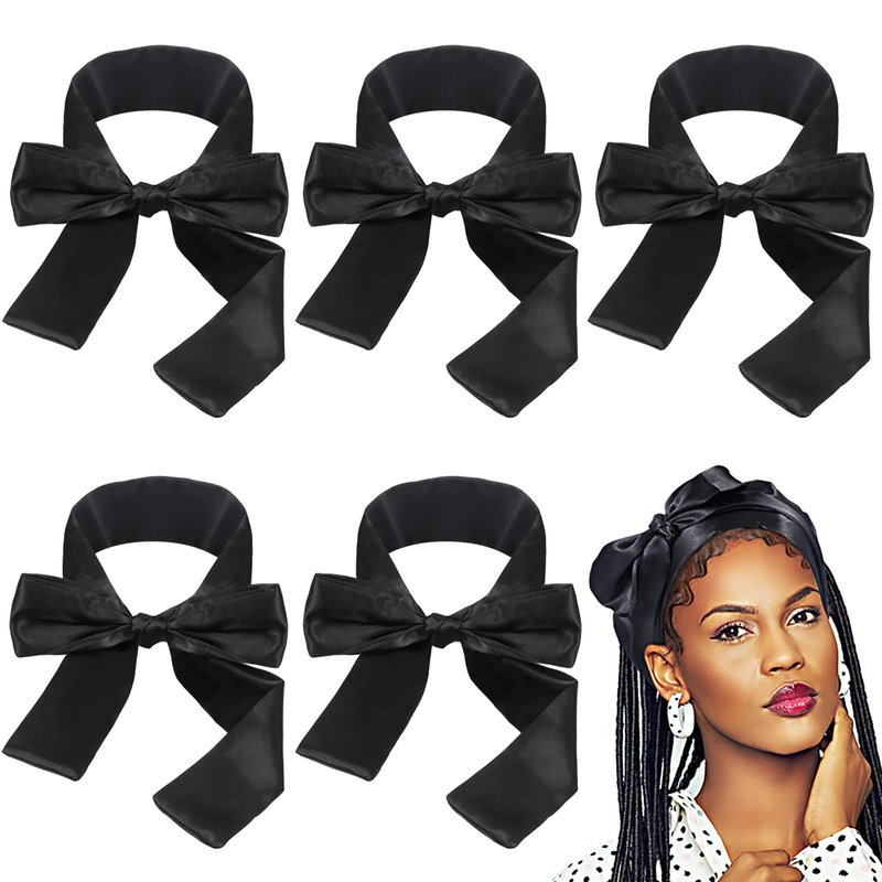 5 Pieces wig grip band edge wrap satin headbands non slip hair wraps black silk scarf headband for makeup/ facial/ sport/ yoga