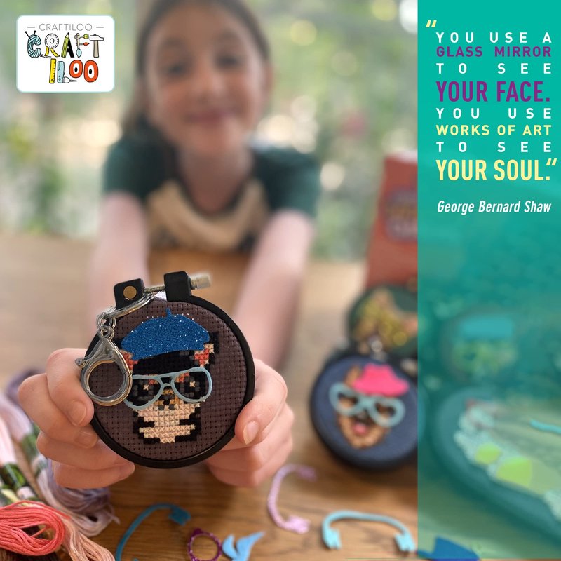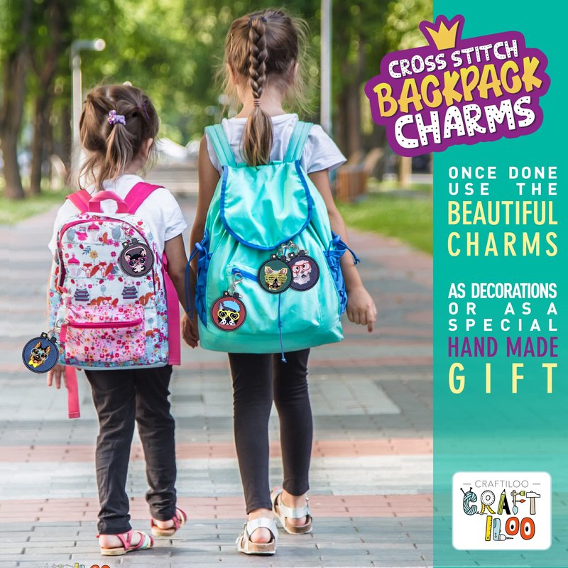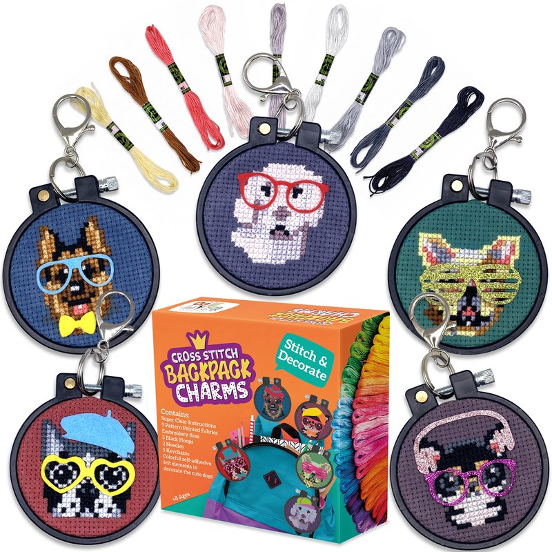 Learn the basics of cross stitch with this kids’ needlepoint kit for beginners. Nurture creativity and dexterity through sewing these colorful cross stitch patterns for kids. Spend time with your child doing cross stitch embroidery. The printed pattern on the surface of the fabric makes stitching easy. Craft and learn sewing with friends during slumber parties or playdates with 5 fun cross stitch projects. Hang the finished embroidery projects with the included keychains on your backpack as a cute charm.