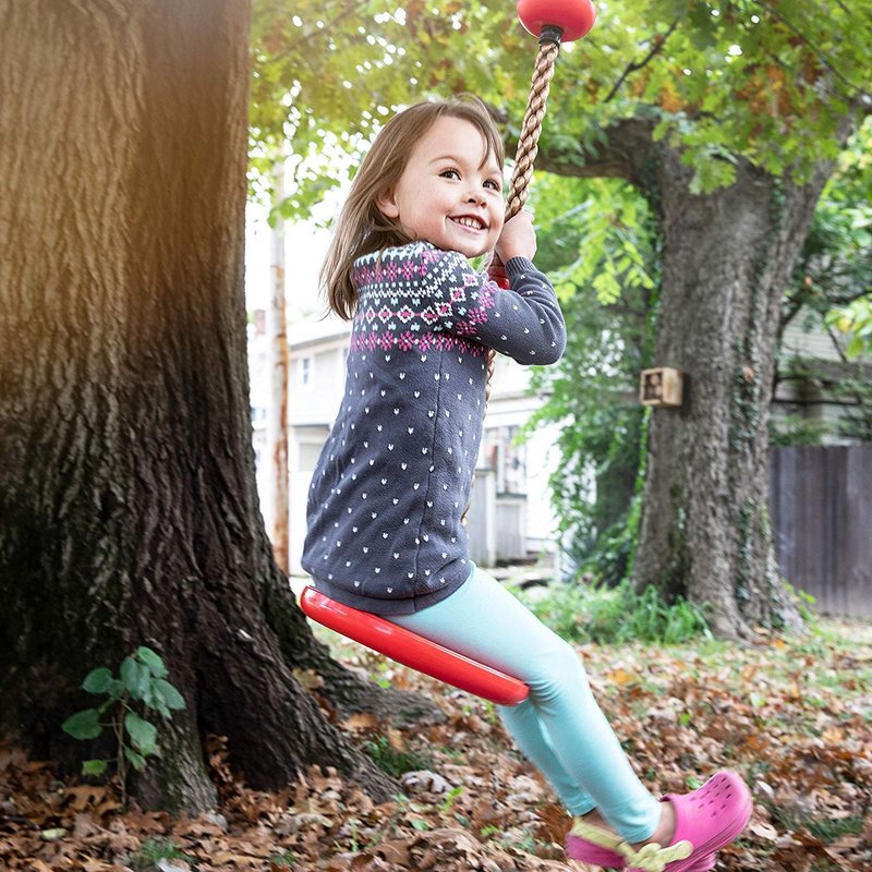 - [Adjustable Rope Set] The rope can length can easily be adjusted (Up to 6.5 Feet in Length), by pulling the plug from bottom of the seat, and tie a knot that best fits your kids Climbing and Swinging needs!