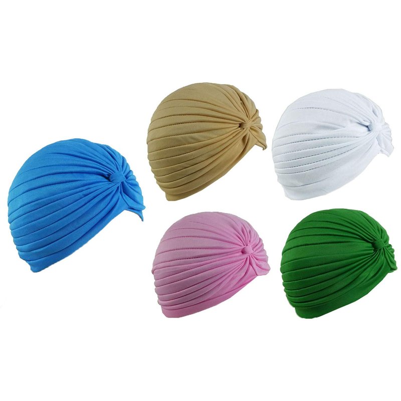 5 Women Stretchy Turban Chemo Cap Bennie Head Wrap Headwear (5 Pastel)