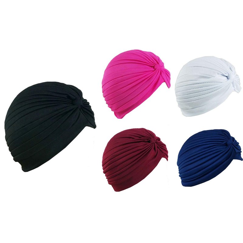 5 Women Stretchy Turban Chemo Cap Bennie Head Wrap Headwear (5 REG)