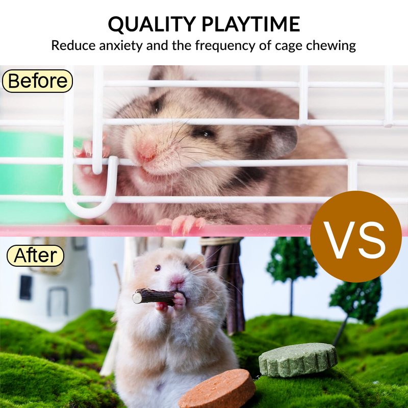 - 【Natural Materials for Guinea Pig Chew Toys】Our guinea pig chew toys set uses natural materials, committed to providing bunnies with a safe and healthy chewing solution. Each rat chew toys is carefully selected from nature's bounty, ensuring no harmful substances or additives are used in the production process. We firmly believe that only the purest, most natural materials can bring pets the purest health and happiness.
