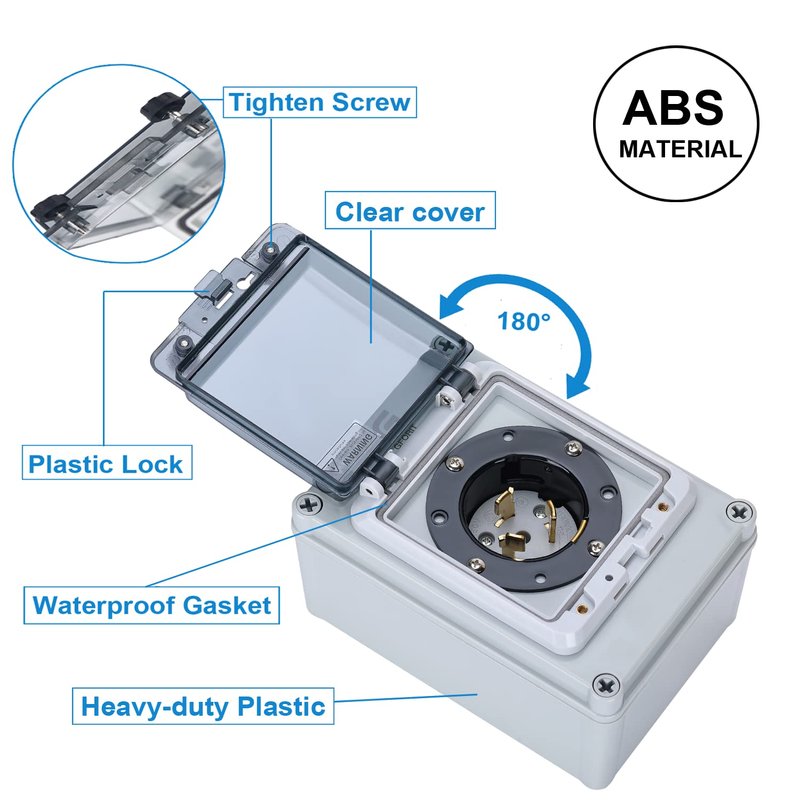 Safety Assurance: It was designed for outdoor using with UL Listed plug and front of the power inlet box is removable for easy placement and wiring, Connects a generator cord to a manual transfer switch or transfer panel which eliminating the need for cords running through windows or doors,to prevent dangerous carbon monoxide fumes from the generator from entering your house.