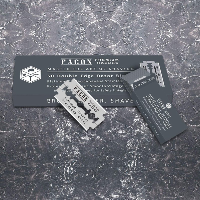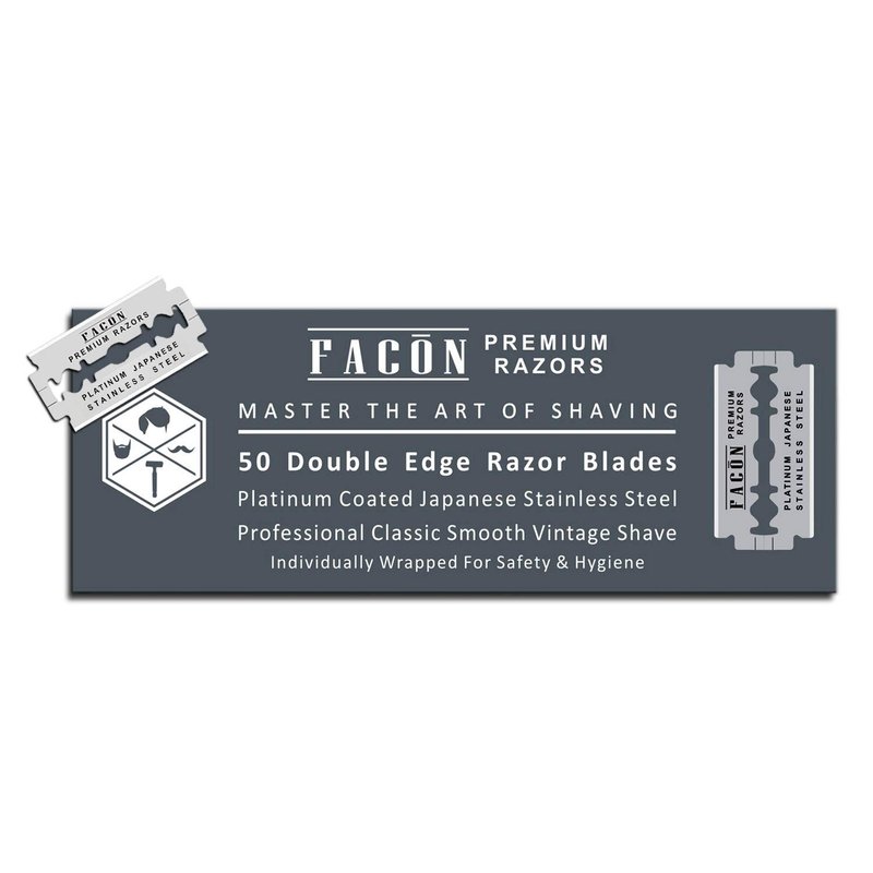 50 Facón Platinum Japanese Stainless Steel Double Edge Razor Blades for Safety Razor - Close Smooth Shaving Experience - 200+ Shaves