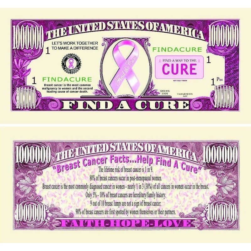 50 “Find A Cure” Million Dollar Bills with Bonus “Thanks a Million” Gift Card Set