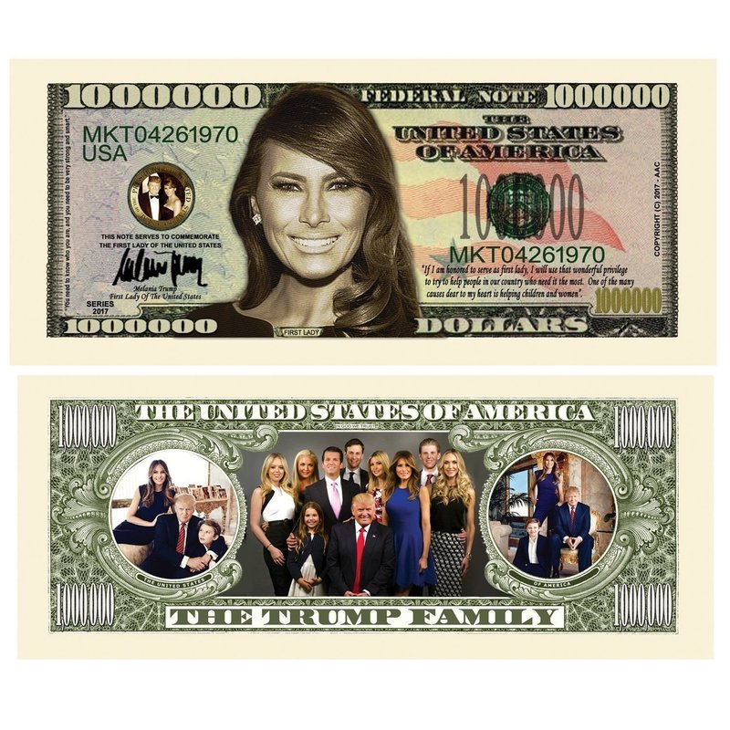50 Melania Trump First Lady First Family Million Dollar Bills with Bonus “Thanks a Million” Gift Card Set