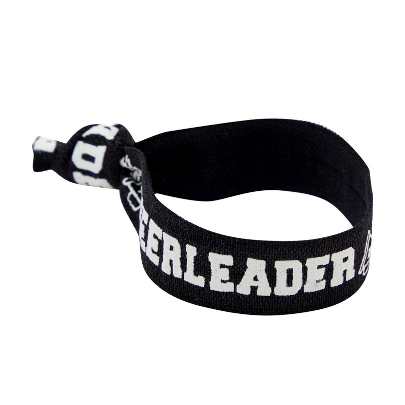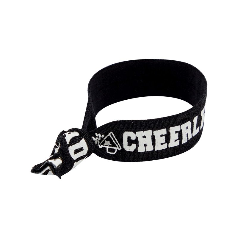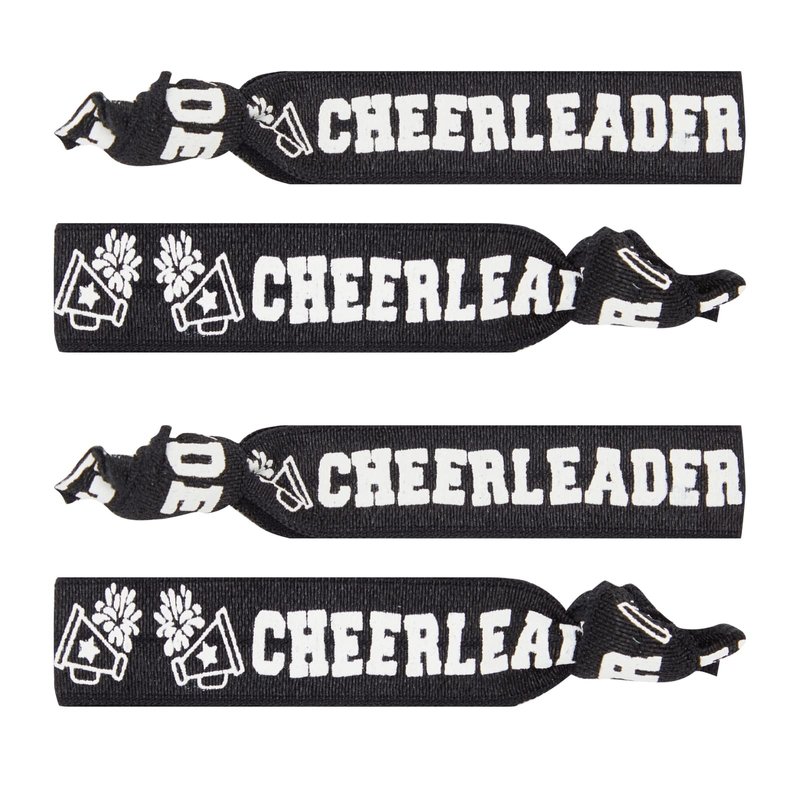 - Cheerleader Gifts: This pack of 50 black bracelets features pompoms and megaphones with "cheerleader" written in the middle; perfect to avoid hair creasing too