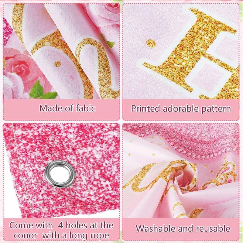 - Convenient to Apply: you can use tapes to fix the birthday party supply pink and gold backdrop on the wall, door, window, shelf and fireplace, or you can use a rope to hang it in various places as you like; You can get an ideal decorative effect without applying complex installation