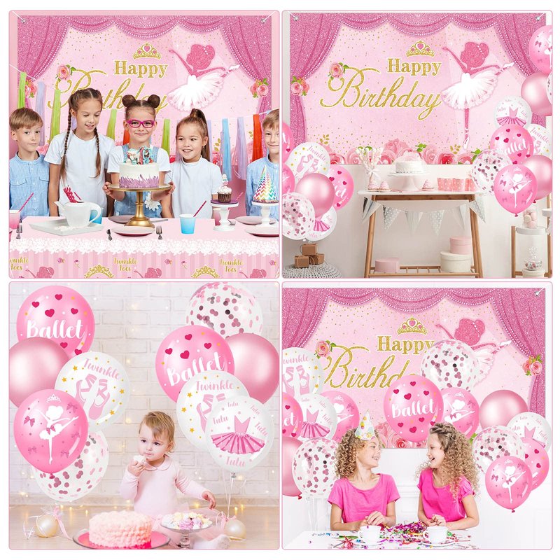 - Plentiful Quantity for Usage: the package comes with 1 piece ballerina birthday backdrop, 32 pieces ballerina balloons in 4 styles, 8 pieces of each, 6 pieces solid color balloons, 10 pieces confetti balloons pink and 1 piece ballerina birthday party table cover, enough quantity to meet your daily use and party decoration needs, which can complement the surrounding environments or other party decorations