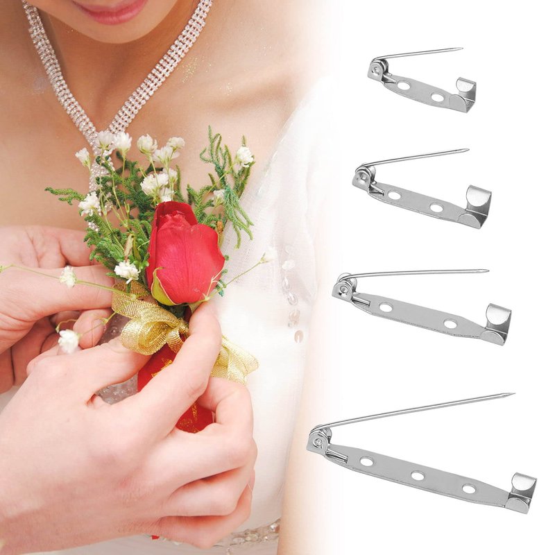50 Pcs Brooch Pins, 4-Size Pack of Safety Pins, Silver Bar Pins, Secure Back Clasp with Back Bar Fastener, Pin Badge Backs with Holes (50)