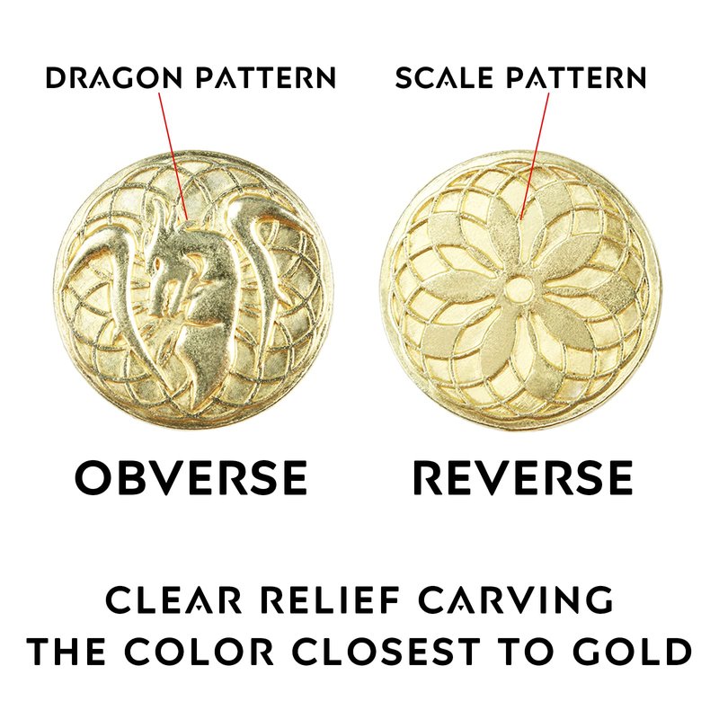 1, The two sides of these gold coins are clearly carved with a three-dimensional retro DND dragon pattern and dragon scale pattern decoration. Their surfaces are treated with our special treatment, so they are not easy to fade, even if you wipe them repeatedly with an eraser.