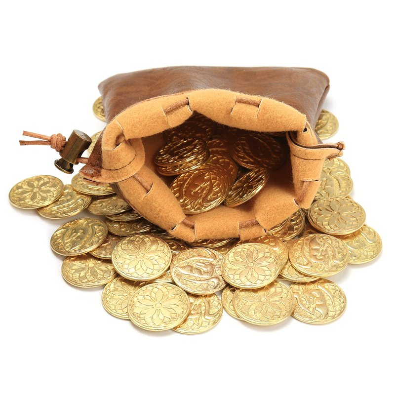 - 【Durable Leather Bag Accessory】Byhoo fantasy golden metal coin set include a brown leather bag. This great a accessory is practical and cool. The touch and appearance of this bag is full of the style of magic old world. And this bag can even hold 100 D&D coins. You can bring more game tokens or dice to various DND meetings and game parties