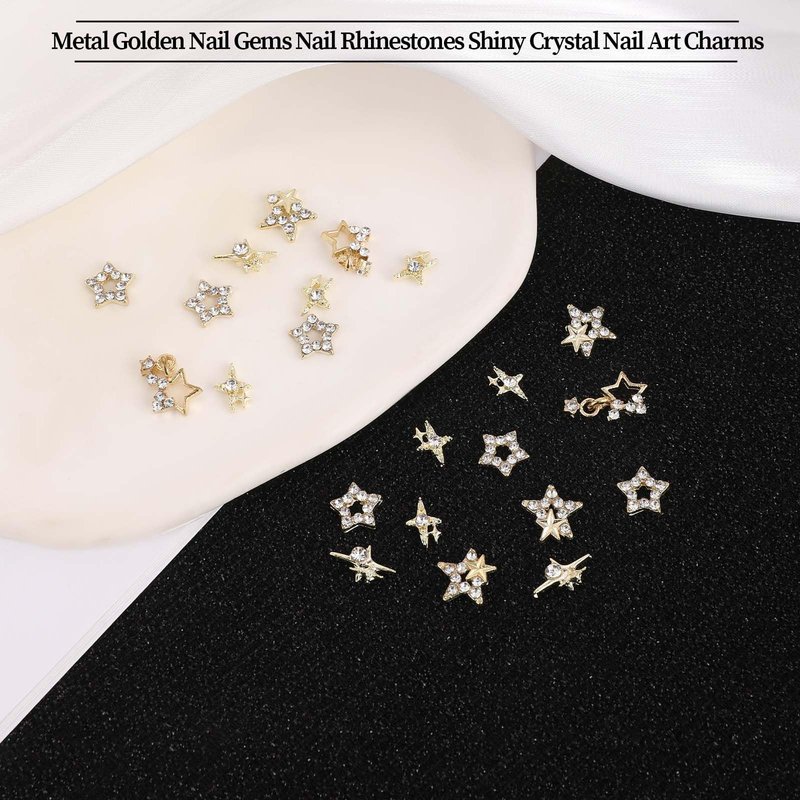 - Star Nail Charms: Nail charm designed with star / starburst shape, metal base with inlaid crystal diamond rhinestones, highly shiny and bling.