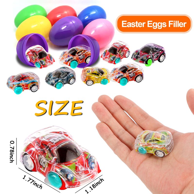 - 【Bulk Toys Stuffers】 50 pcs mini pull-back toy cars with different colors, green, pink, black, red, yellow, blue, orange, white, and so on. Bright color and cute vehicle model, great as party favors and they are small enough to fit into medium-sized plastic Easter eggs for Easter egg hunts or Christmas Child shoe-box gifts as an extra little fun filler item.