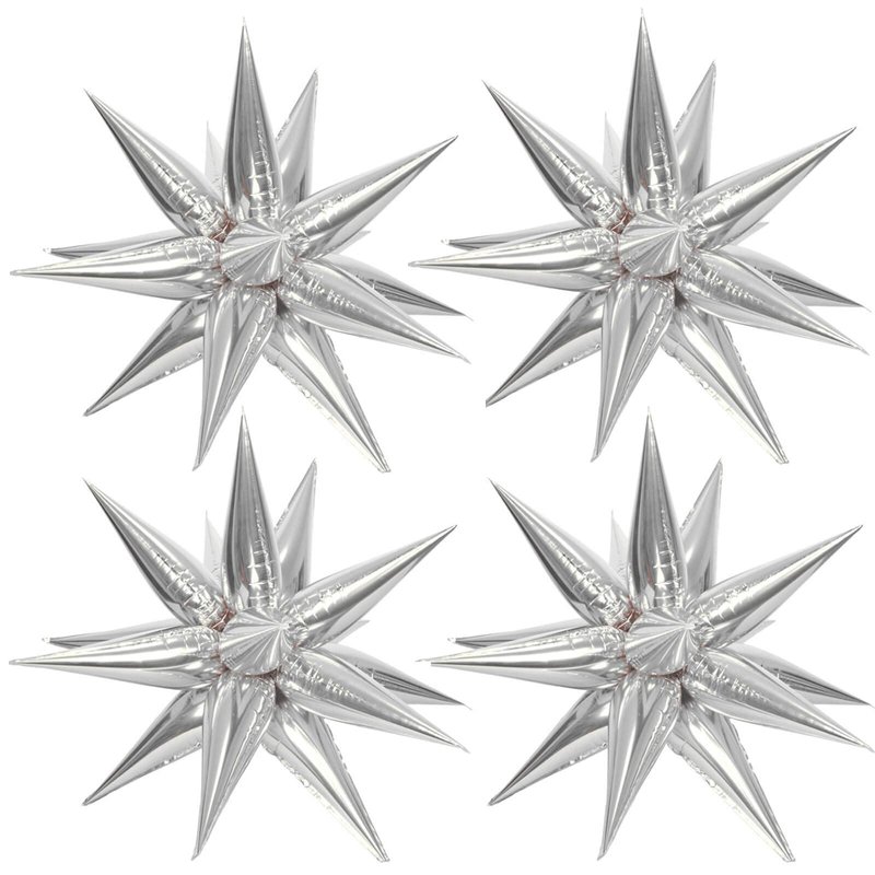 - Unique Star Cone Foil Balloons:50Pcs Silver 26 inch Star Cone Balloons (uninflated) + 1pcs Straw ,12 or 10 cone balloons to assemble into an exploding star balloon by simple assembly .At least four exploding star balloons can be assembled.