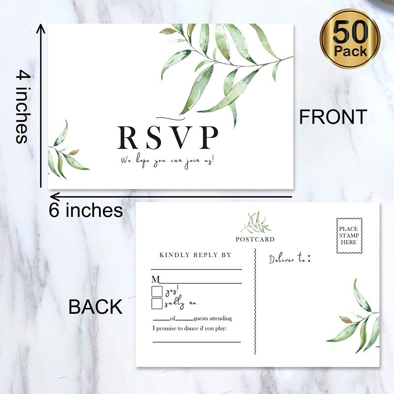 50 RSVP Postcards, Rsvp Cards for Wedding, Bridal Shower, Baby Shower, Greenery RSVP Response Cards, 4 x 6 Inches.
