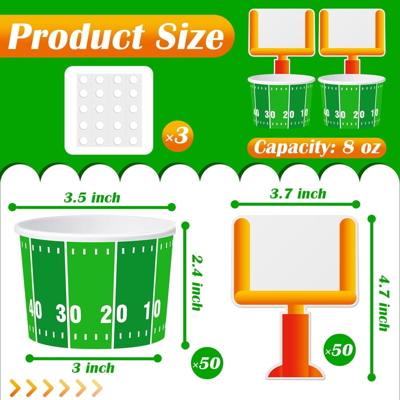 - Football Theme Party Supplies: you will be provided with 50 pieces of sports bowls, 50 pieces of football goal cards as well as 3 sheets of dot stickers, adequate quantity can fully meet your daily needs, also you can share with intimate mates and family members who are going to hold a party