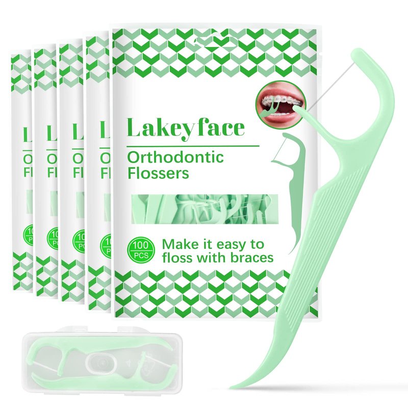 Take care of your teeth with our 500-count orthodontic flossers for braces. The lower spatula of our brace floss is thin enough to reach under the metal archwire, providing you with quick and easy tooth cleaning. The toothpick end helps you remove food and plaque without harming your gums or braces. And the comfortable grip provides better hold and control while flossing your braces. You can now eliminate worries of damaging wires and brackets when flossing with our dental floss braces. Our value pack includes 5 bags, each bag contains 100 counts. 500 counts allow long-term use for 5 months if you clean your teeth three times a day. Come with a floss dispenser makes it easy to store and transport.