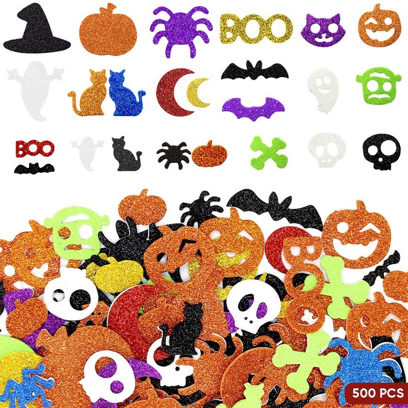 500 Pcs Halloween Foam Stickers Self Adhesive Glitter Foam Stickers for Kids Arts and Craft Supplies