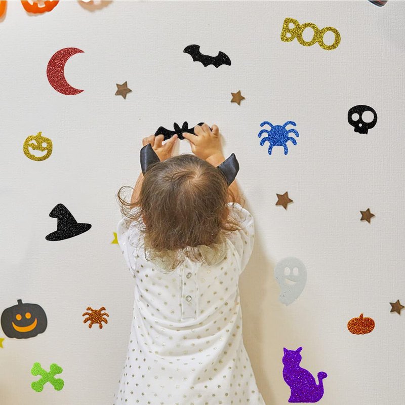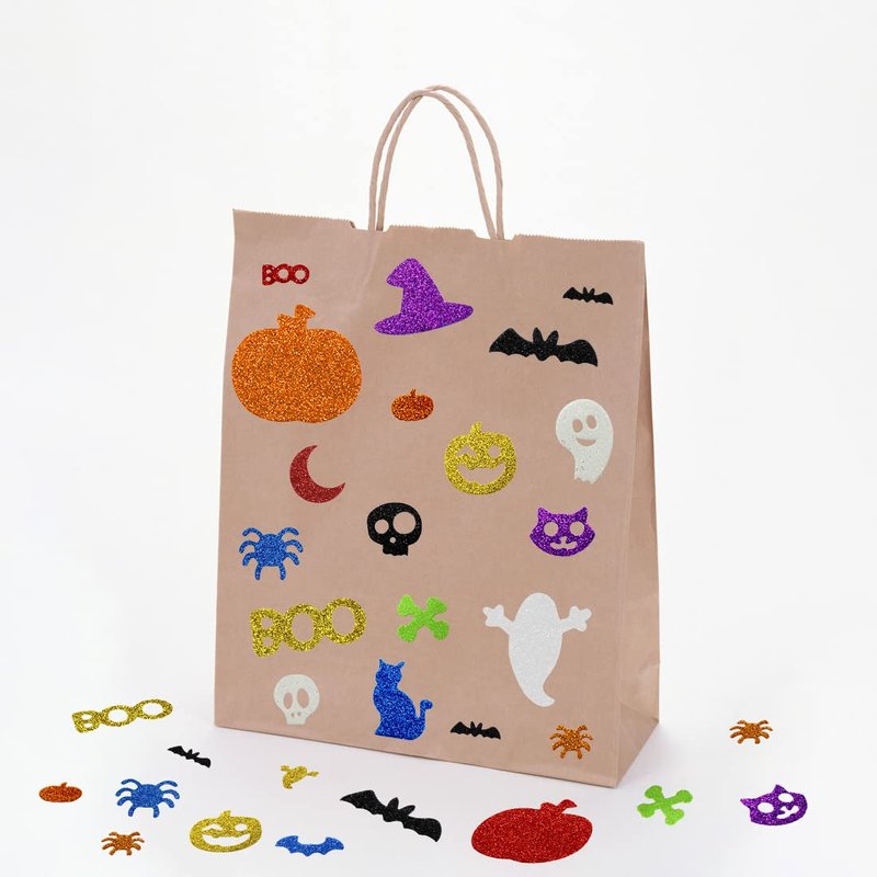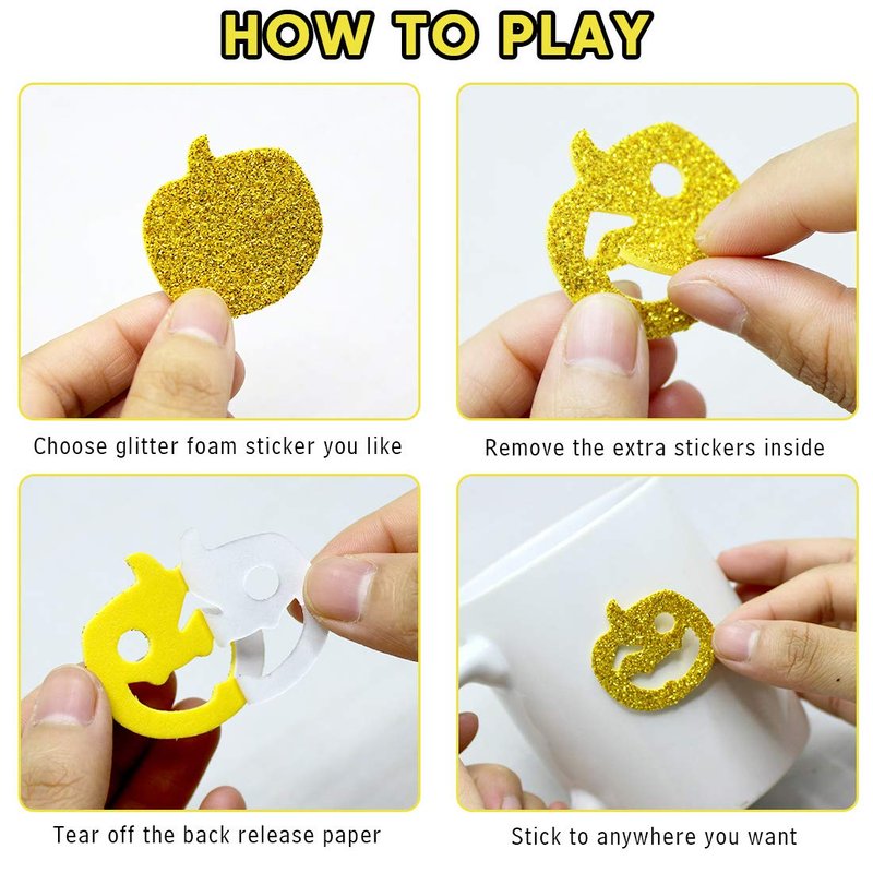 - Halloween Glitter Foam Stickers Pack: The shiny glitter Halloween foam stickers make the Halloween holiday more beautiful and will easily catch people's eyes. These glittery adhesive stickers are definitely the best choice for Halloween decoration and gifts for family and friends.