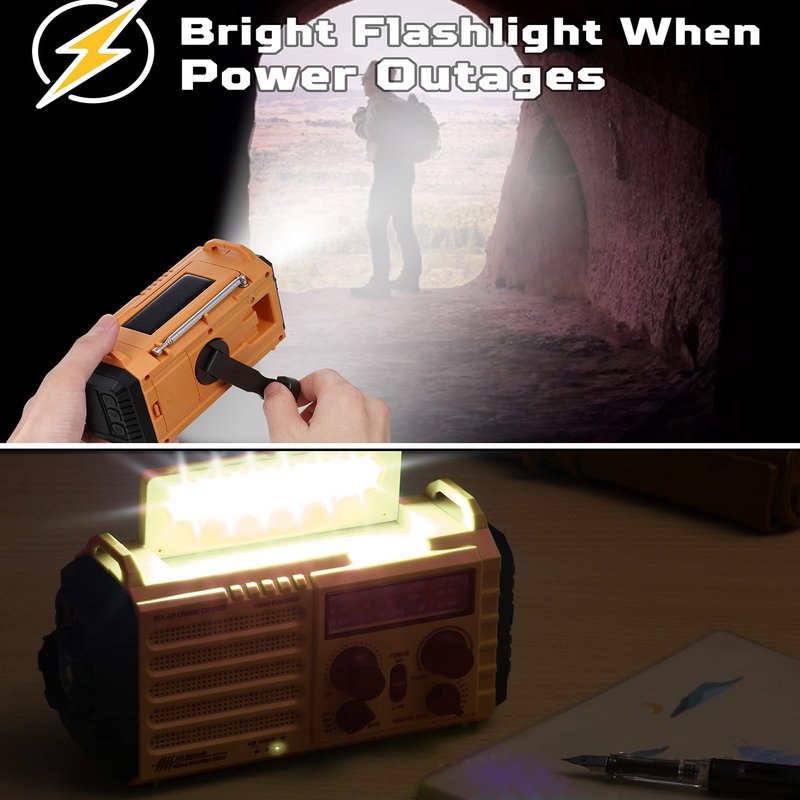 - ใ๐๐บ๐ฒ๐ฟ๐ด๐ฒ๐ป๐ฐ๐ ๐๐ฒ๐น๐น๐ฝ๐ต๐ผ๐ป๐ฒ ๐๐ต๐ฎ๐ฟ๐ด๐ฒ๐ฟ & Loud SOS AlarmใYour Cellphone will never power off even blackout and internal Li-ion Battery outages,hand crank continuously genarate power to recharge the built-in battery and connect the included usb output charging cable for cellphone charging.allow you to make a phone call for help or get in touch with your family in emergency.The red SOS flashing beacon which is morse code and loud enough to attract the attention of would be rescuers.