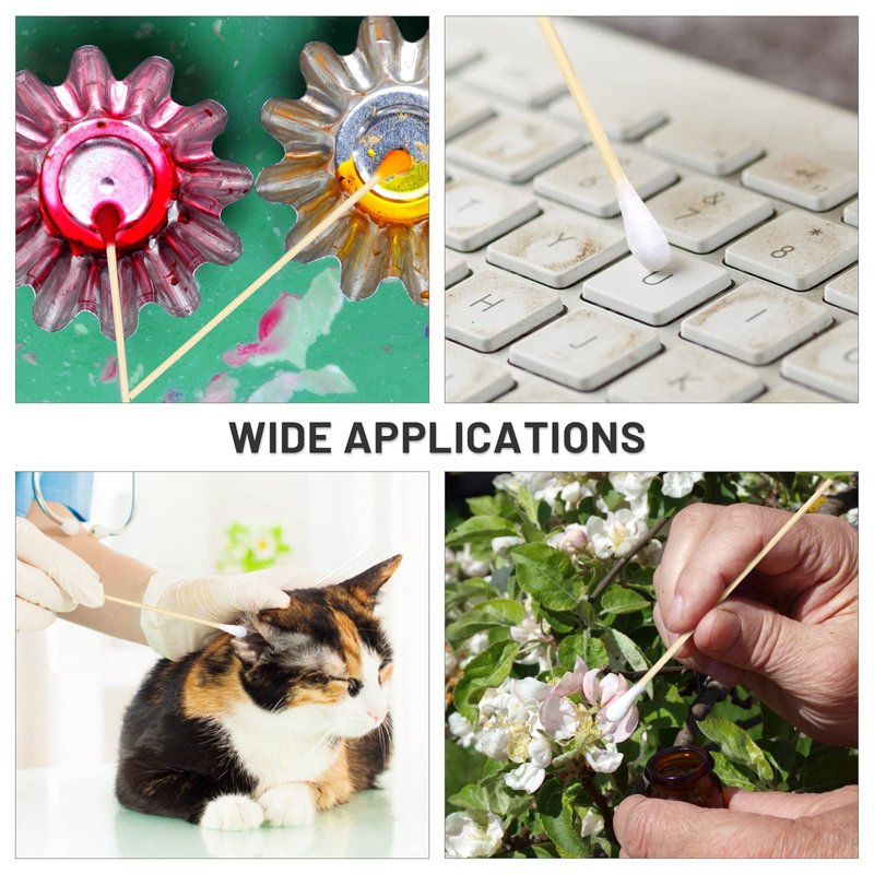 - ✔️ UPGRADED QUALITY: Durable bamboo handle and decent amount of cotton on tips, lint free swabs with good absorbency and the handle supports some pressure, not easy to break. Unlike other cheaply made flimsy and brittle cotton swabs with wooden sticks