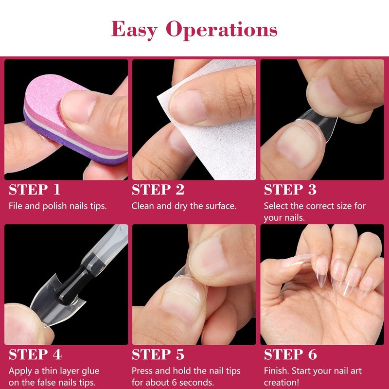 - 【Safe ABS Material】The half cover acrylic nail tips are made from environmental friendly high quality ABS material, which is thick and sturdy enough to last about 2-3 weeks. It's no toxic, no smell, no harm to your nails. So that you can enjoy the nail care and nail art decoration more comfortable.