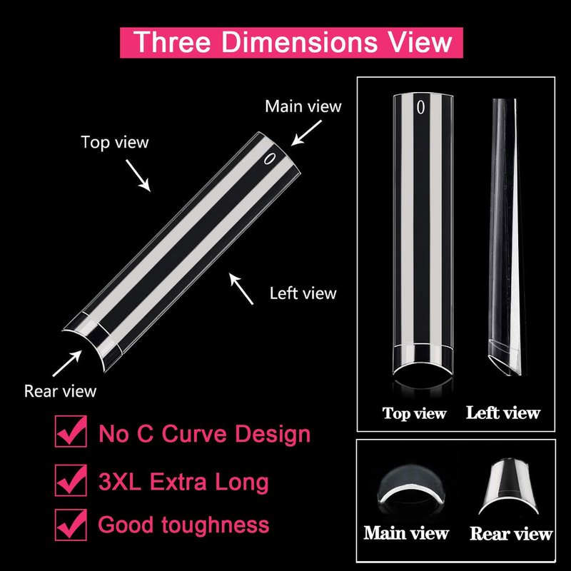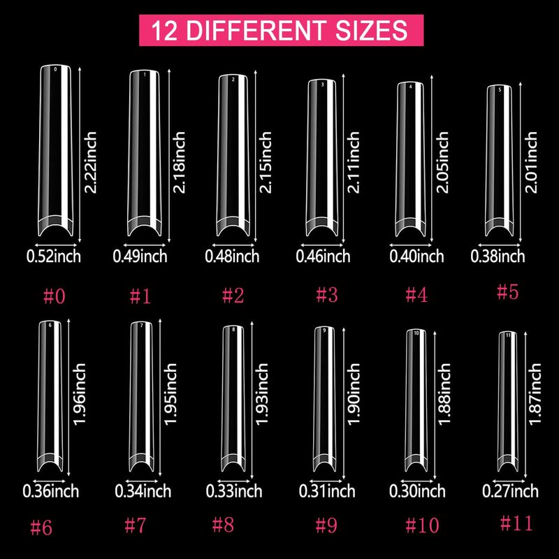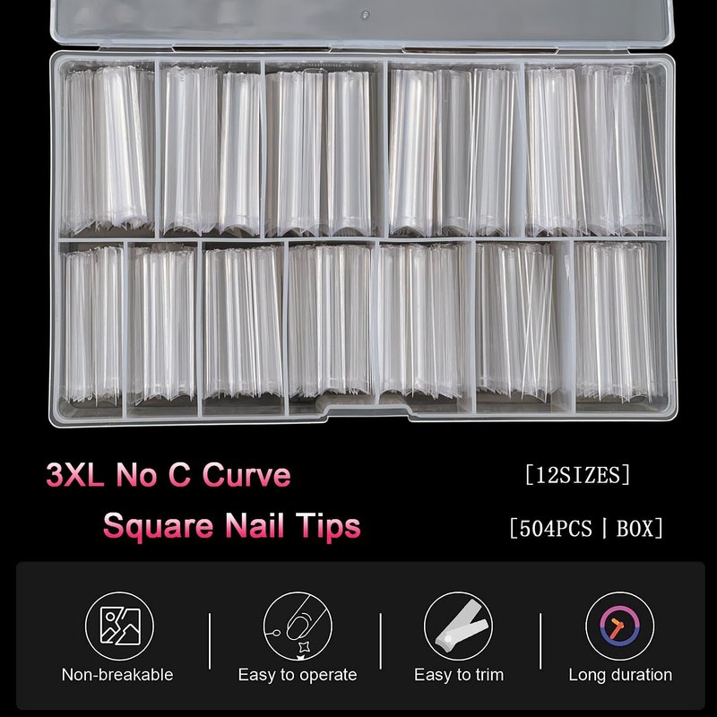 - 504Pcs & 12 Sizes- The 3xl square nail tips are prenumbered with size from 0-11 individually, cherry-pick the nail sizes that fit most people nail bed, you can easily choose your most suitable size. 504pcs Extra long nail tips are packaged in a box, each size equipped with 42 pieces, value set for extension nail or diy nail art.
