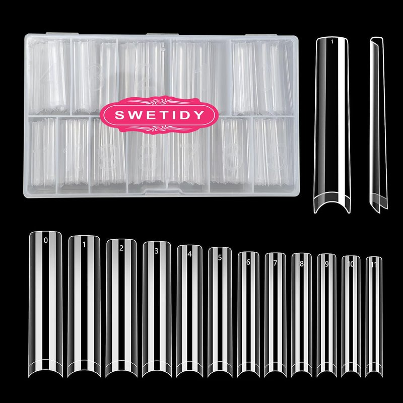 504Pcs No C Curve 3XL Extra Long Square Nail Tips for Acrylic Nails Professional, SWETIDY Clear Straight Flattened Half Cover False Nails Tips with Case for Nail Salons and Home DIY, 12 Sizes