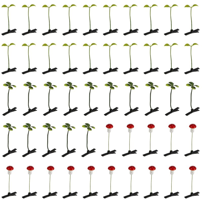 50pcs, Bean Sprout Hair Clips, Four-Leave Clover, Mushroom, Funny Plant Hair Clips, Cute Headwear, Hair Accessories for Kids, Girls, Women, Home School Party Supplies