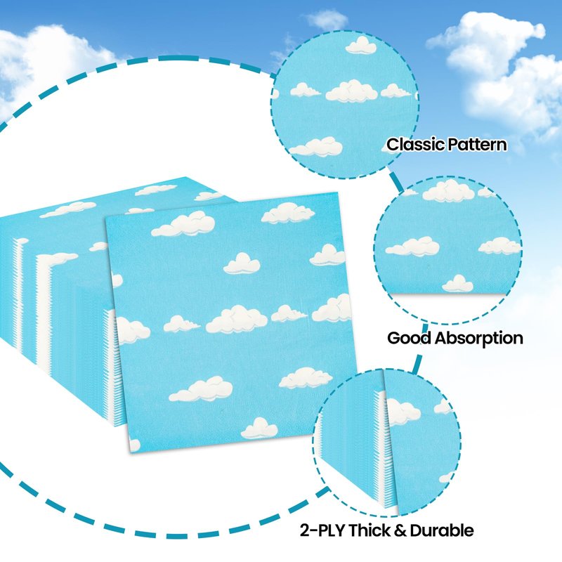 - 【PACKAGE INCLUDES】:You will receive a set of 50 paper napkins decorated with blue sky cloud motifs, plenty of quantity for your blue sky themed or other themed party. A sufficient number of napkins will allow you to focus on the party fun and immerse yourself in the party.