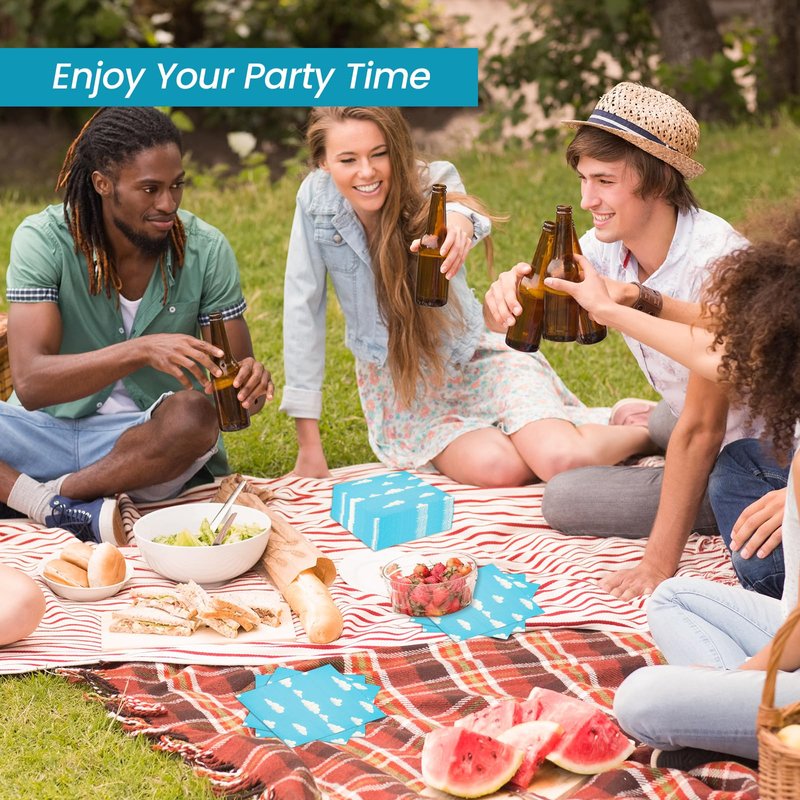 - 【PREMIUM QUALITY MATERIAL】: Our blue sky themed napkins are made from a thickened paper material with a two-ply construction that is both soft and durable. This carefully selected material means you can use them without worrying about them tearing easily, providing comfort and reliability in your party environment.