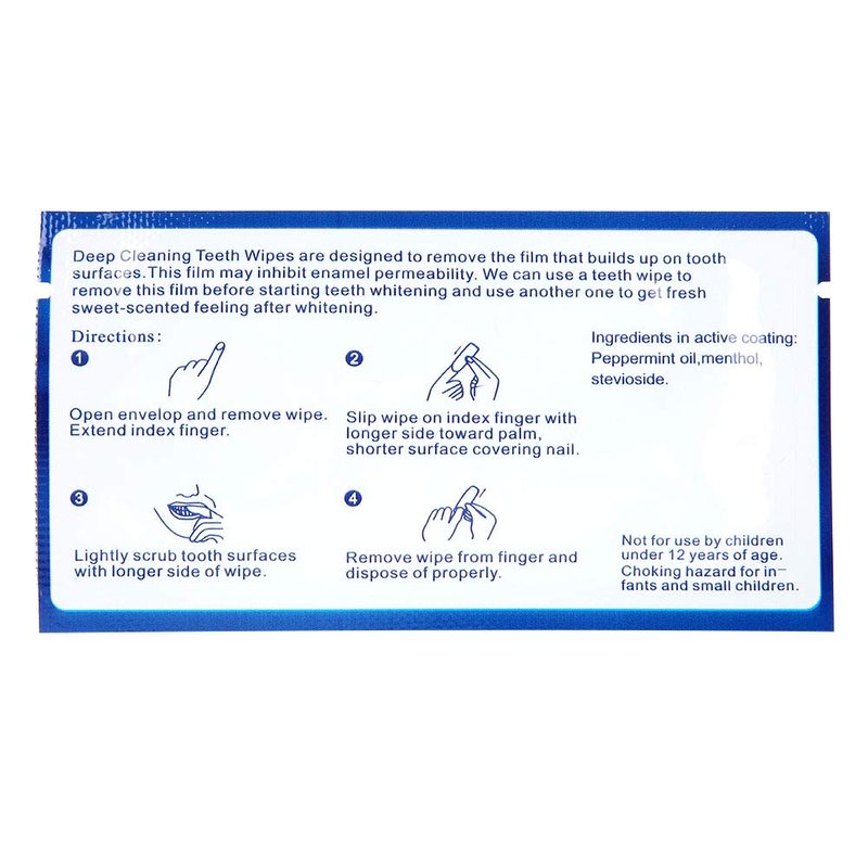 Deep cleaning teeth wipes are designed to remove the film that builds up on tooth surfaces. This film may inhibit enamel permeability. Can effectively remove things on your teeth.
