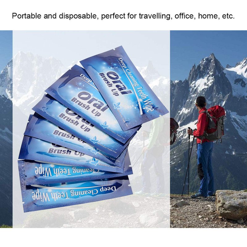 - Cloth Teeth Clean-PORTABLE AND DISPOSABLE: Contains 50 pcs in small packages, just carry some ones for travelling, office, home, etc.