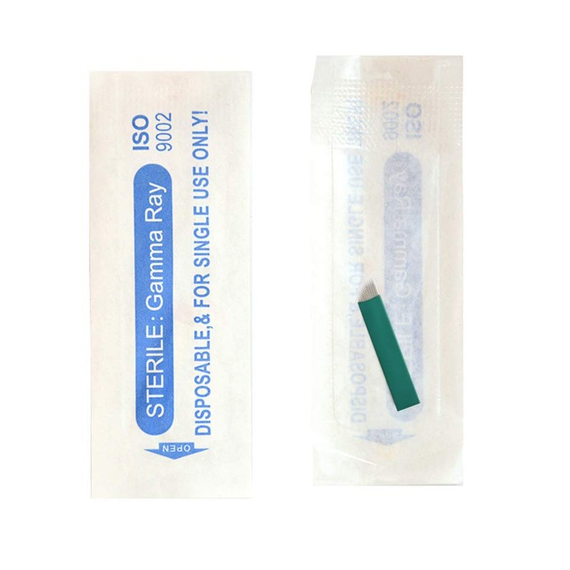 50PCS Green S14 Sloped Eyebrow Tattoo Needles Permanent Makeup Manual Microblading 14 Pins 0.18mm Finest Needles Disposable Sterilized