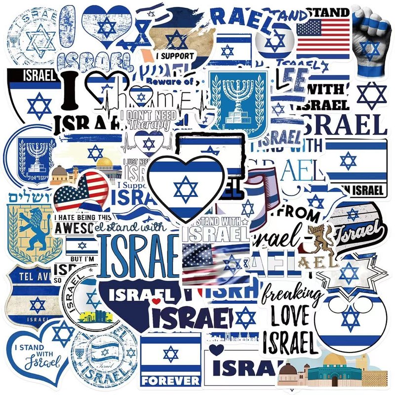 50PCS Israel Stickers,Stand with Israel Stickers,Israel Flags Decal,Waterproof Vinyl Israel Stickers for Bumper Water Bottle Car Decal