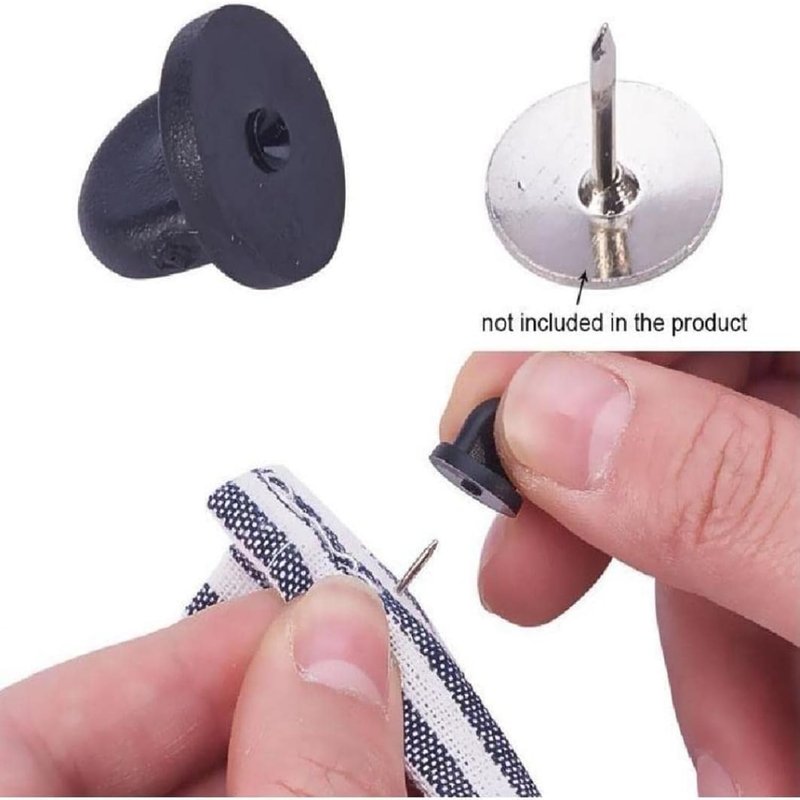 - Versatile Compatibility: Whether you're wearing lapel pins, badges, hats, tie tacks, name tags, toy pins, or citation bars, our pin locks are suitable for all! Each pin back features a hole that is compatible with tie tack pins, adding to their versatility. Please note that these rubber pin backs are designed for pins with a thickness of 1-1.2 mm, ensuring a snug and secure fit.