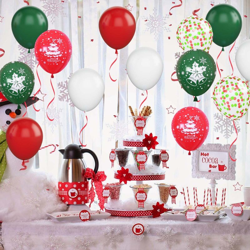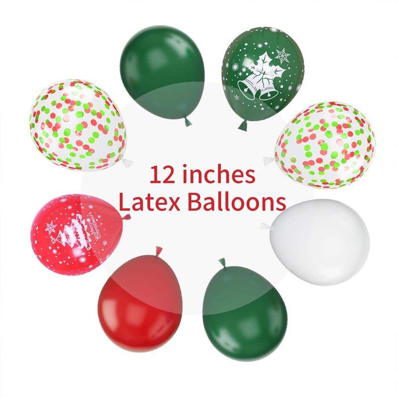 - 【Party Balloons Decorations Set】Our balloon decorations set includes 15PCS 12IN Green Balloons,15PCS 12IN Red Balloons,14PCS 12 IN White Balloons,6PCS 12IN Green Red Confetti Balloons,Two rolls of ribbon. The sufficient number of baloon is enough for you to decorate a unique party and make any dull space full of vitality and joy.