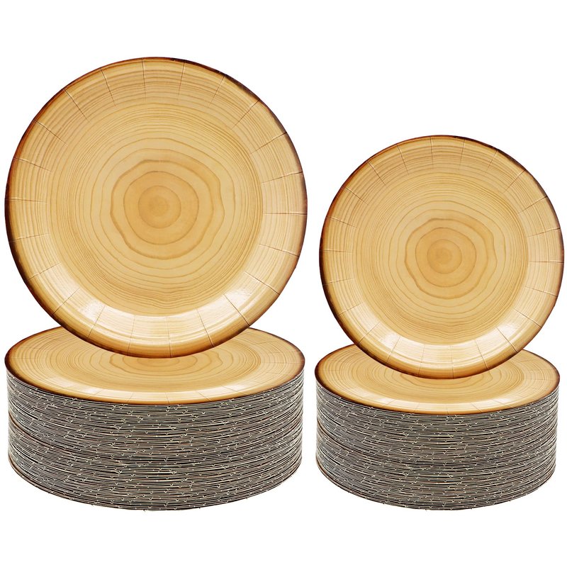 50Pcs Wood Grain Party Supplies Wood Paper Plates Set 9"Rustic Wood Slice Dinner Plates,7"Woodland Plates Camp-Fire Camping Party Supplies Woodland Baby Shower Lumberjack Birthday Party Decorations