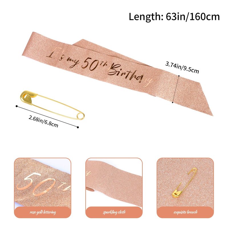 - 【Features】The rose gold birthday belt is made of high-quality glitter fabric and printed with rose gold foil characters. Elegant and gorgeous! The belt is 160 cm long and has a beautiful pearl pin.