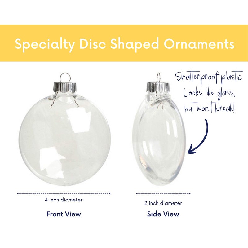 - Large, round disc-shaped ornament is 4 inches in diameter and 2 inches wide